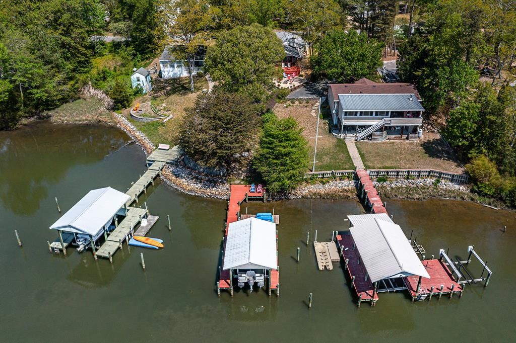 Charming cottage on Sturgeon Creek with easy boating access to the Rappahannock River & Chesapeake Bay. Ideal Deltaville location just minutes to restaurants, shopping. This delightful waterfront getaway with 1080 square feet boasts an open floor plan with spacious Living Room with gas fireplace, bright and sunny Kitchen with new stainless steel appliances with stylish barn door access to delightful Creek Room leading to Screen Porch and waterfront Deck for entertaining family and friends. Porches, Decks, Patios - all merging the surroundings to "bring the outside in". Inside, ease of flow keeps the space feeling open and airy, with two Bedrooms and two full Bathrooms plus convenient Powder Room & Laundry Room. Primary Bedroom has ensuite bathroom with river- rock tile & step over shower. Soak in the scenery from the waterfront Screened Porch and Deck and expansive paver Patio with firepit while taking in the sights and sounds of waterfront living. Complimented with a Dock w/covered boat lift, floating dock(as-is), & Jet ski dock, this stylish getaway is an immersive experience of small-town charm in a lovely coastal Community. Newer Appliances & Gas Logs. Community boat ramp & picnic area. Less House, More Home-Proof that the Best Things Come in Small Packages! Quick access to restaurants & shops, this is an ideal weekend retreat or full-time home. No HOA and it has had a successful STR record. Most furnishings available post contract. Whether you're Kayaking the Creek, Reeling in on the Rappahannock or Cruising the Chesapeake, make your Escape & Come Hide Out Waterside!
